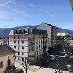 ベッドルーム1室のStudio 38M2 Le Grand Angle, Centre-Ville, Parking Et Terrasse エクスレバンはヴァガボン庭園から歩いて25分以内です。 この38m²のアパートには都市の景色を望むテラスがあります。